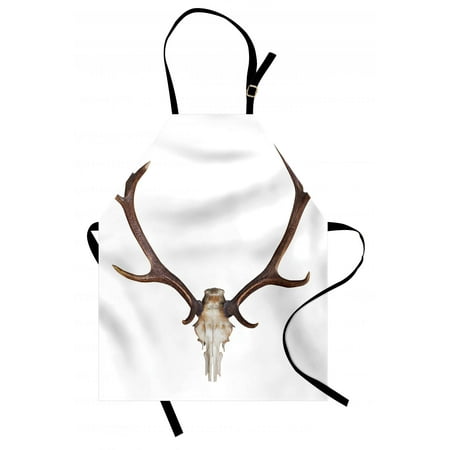 A white apron with a black neck strap and a large, detailed deer skull with antlers and a human skull with a crossbone design in the center. | Antlers Apron Antlers of a Huge Stag Elk Skeleton Big Bone Horn Hunter Style Artwork Print, Unisex Kitchen Bib Apron with Adjustable Neck for Cooking Baking Gardening, Brown and Beige, by Ambesonne (Big Boned Skeleton) | 0bee5ac2469a33201a046167d5d315426927ce62b59d1195e193c80d1278989d | 001229746035 | 0 | 0 | 27 | 35 | 0 | 0 | |