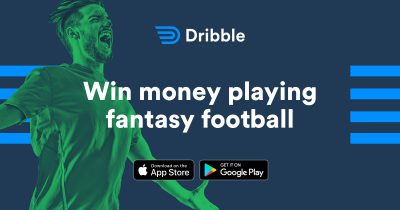 The second image is a promotional poster for a fantasy football game. It features a man in a green shirt with his mouth open, as if he is cheering or shouting. The text 'DRIBBLE' is prominently displayed at the top, with the tagline 'Win money playing fantasy football' below it. The image includes a smartphone with the app's logo and a download button, as well as a QR code. The background is a gradient of blue and green, and the overall design is modern and eye-catching. | Dribble promo graphic - fantasy football betting on iphone or android | 4eb2db34518918df30b966018d927bfce9d1b8d423927e952d0ddf799c9d5dd6 | 001229745963 | 0 | 0 | 86 | 11 | 0 | 0 | |