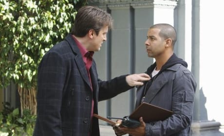 A man in a dark suit with a plaid pattern and a red shirt is standing next to a man in a dark jacket and a white shirt, who is holding a brown briefcase. They are both looking at each other, and the man in the suit is pointing at the man in the jacket. | Rick Castle and Javier Esposito | 7fa213ce9b63a37be42b8ca8ac778bc446476d0840ebe3950310f25f3a0d86da | 001229746176 | 0 | 0 | 55 | 5 | 0 | 0 | |