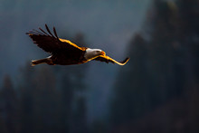 A majestic eagle is soaring through the sky with its wings spread wide, showcasing its detailed feathers. The eagle's head is turned slightly to the side, and its beak is open, possibly in a call or a display of strength. The background features a dense forest with a mix of evergreen and deciduous trees, and the sky is filled with soft, diffused light, suggesting early morning or late afternoon. | The Evening Hunt Of A Bald Eagle | c70c2b9a5ce40345cf784db3976abb603d19f1486a7857df906e97d1d32e5e23 | 001229746273 | 0 | 0 | 69 | 7 | 0 | 0 | |