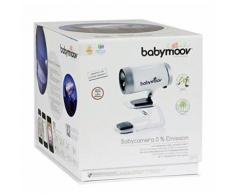 A white box with a blue and red logo on the top left corner is displayed against a white background. The box contains a baby monitor with a camera and a receiver, both featuring a white and black design. The monitor has a circular base and a small screen, while the receiver has a rectangular shape with a small screen and buttons. The box is adorned with various icons and text, including a green leaf, a red circle with a white slash, and the words 'BabyMoov' and 'BabyMoov 2.0'. The box also has a barcode and a QR code on the bottom left corner. | Babyphone Vid\xc3\xa9o Babycamera 0% Emission | c36ffb3c5b0125e25cba5c7a9dd1bfb17aa69a3e725ee7ffcd23be48e5d37eb5 | 001229746317 | 0 | 0 | 104 | 5 | 0 | 0 | |