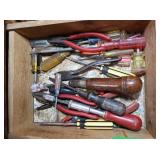 A wooden toolbox is open, revealing a collection of various tools including screwdrivers, pliers, and wrenches. The tools are scattered haphazardly, with some lying flat and others standing upright. The toolbox is filled to the brim, with tools of different sizes and shapes occupying the entire space. | Contents of Drawer incl Craftsman, Nippers, | 1dfc4b1626a30f949c2e1ab6f4a5d163299c7765ff6c3e045de4808089bda8b4 | 001229746297 | 0 | 0 | 47 | 6 | 0 | 0 | |