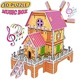 The second image shows the same 3D puzzle box, but now it is a completed and colorful dollhouse. The house has a pink roof with a white stripe, a yellow body with a brown base, and a green door and windows. There are two windmills on the roof, and the scene is adorned with musical notes and symbols, suggesting a musical theme. The background is a plain white color, and the image has a more vibrant and finished appearance compared to the first image. | Best Creativity for Kids Gift For 6 Yr Old Boys - Magic 3D Puzzle Jigsaw Windmill Dollhouse Model DIY Review | 38e0e564af059fd798a52e54c816d563cc85bbe9e6e2fef3168a3a1de57419d8 | 001229746487 | 0 | 0 | 84 | 20 | 0 | 0 | |