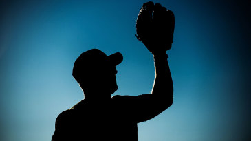 A silhouette of a baseball player in a batting stance with a baseball glove raised in the air, against a clear blue sky. | A wicketkeeper's gloves in silhouette | 8bff6d7e4947395c5842db43a19125a2dfbf86bf00c3ec3e4f1321959595bfef | 001229746369 | 0 | 0 | 23 | 5 | 0 | 0 | |