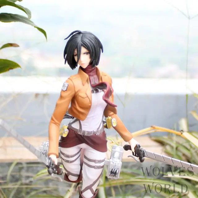 A figurine of a female character with short black hair, wearing a brown jacket, white shirt, and brown pants, holding a sword with a black and silver hilt, and a shield with a red and white emblem. The figurine is placed on a wooden surface with a backdrop of a green plant and a view of a mountainous landscape in the distance. | Limited Edition Mikasa Ackerman Model (26 CM) | 05f4c0ff0eddc38aab801ec2060187c7bf52d7f0c1f583ba0fc0ccc61c86c587 | 001229748008 | 0 | 0 | 62 | 7 | 0 | 0 | |
