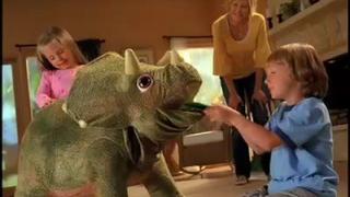 A young boy is sitting on the floor with a large green dinosaur toy in front of him. The dinosaur has a friendly expression with large eyes and a wide open mouth. The boy is holding a green object, possibly a toy, in the dinosaur's mouth. Behind the boy, a woman is standing and smiling, and a young girl is sitting next to the boy, also smiling. The room has a warm ambiance with a couch and a potted plant in the background. | Kota the Triceratops - Playskool | 0116c2a2ab6182ae6c092ae8d0deaedc2cc3ceac9fb4dd187f89c9bc51c8b905 | 001229748004 | 0 | 0 | 83 | 5 | 0 | 0 | |