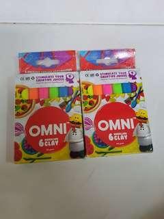 Two packs of colorful markers are placed side by side on a white surface. Each pack contains a variety of markers with different tip sizes and colors. The markers are arranged in a way that the tips are visible, showcasing the vibrant colors. The packs have a red label with the word 'OMNI' and the number '6' on them. | Omni play dough clay modelling | 7e8b9c7dbb2ae89f3cac96d08ceaa4bd7a4a327c00c5a41ff9be9592e2af1cee | 001229748054 | 0 | 0 | 59 | 5 | 0 | 0 | |