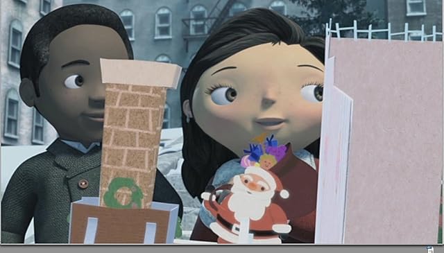 A digital illustration of a man and a woman standing in front of a cardboard cutout of a house. The man is on the left, wearing a brown jacket and a tie, and the woman is on the right, wearing a red and white sweater with a Santa Claus design. They are both looking at the cutout with smiles on their faces. The background shows a cityscape with buildings and a clear sky. | Long Dark and Taylor Hay in Yes, Virginia (2009) | da48caa9921236b2c54886192df395b4d22f84a2bf8fd1384e4337b4388d9b0d | 001229748437 | 0 | 0 | 73 | 9 | 0 | 0 | |