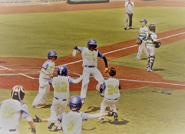 A group of young baseball players are celebrating on the field after a game. They are wearing blue and white uniforms with the number 24 on their jerseys. One player is holding a baseball glove, and another is holding a baseball bat. The players are hugging each other and appear to be in high spirits. In the background, there are two adults, one of whom is holding a baseball bat, and the other is holding a baseball glove. The field has a red dirt area, and there are white bases visible. | Travel Baseball | OH | Force Baseball | 6af8e1dfb4bcb702c134ca71ca98fae6661cdc2db5543961c75b5a340bd3e2bb | 001229748066 | 0 | 0 | 91 | 7 | 0 | 0 | |