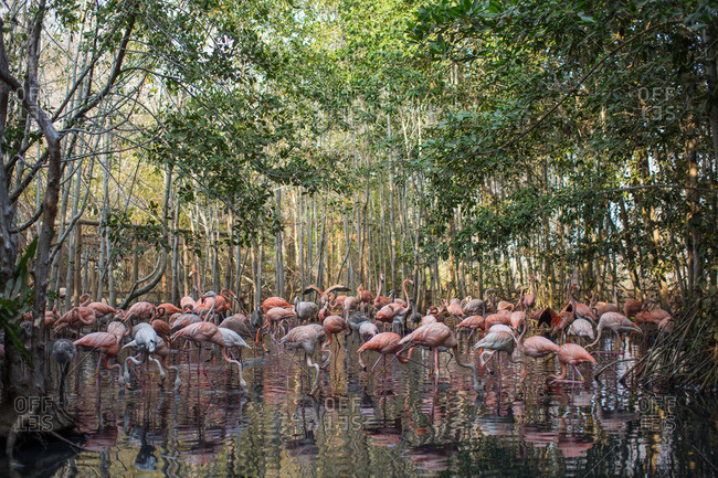 A group of flamingos is standing in shallow water surrounded by trees and foliage. | Flamingos foraging in a pool. | 0d4609520146414df9c5e6decedd4054e97c1f8dbf62dbe3af163b2829306f5e | 001229748649 | 0 | 0 | 14 | 5 | 0 | 0 | |