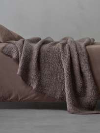 A cozy bed with a large, textured brown blanket draped over it. The blanket is partially covering the bed, with one corner hanging down over the edge. The bed is against a plain wall, and the floor is a light grey color. | Wooly Throw \xe2\x80\x93 Cacao | bd4a1d7b9ca87a7f52c2e5f7986137e93d357b186e6788808ac0093c0dc87688 | 001229748828 | 0 | 0 | 42 | 4 | 0 | 0 | |