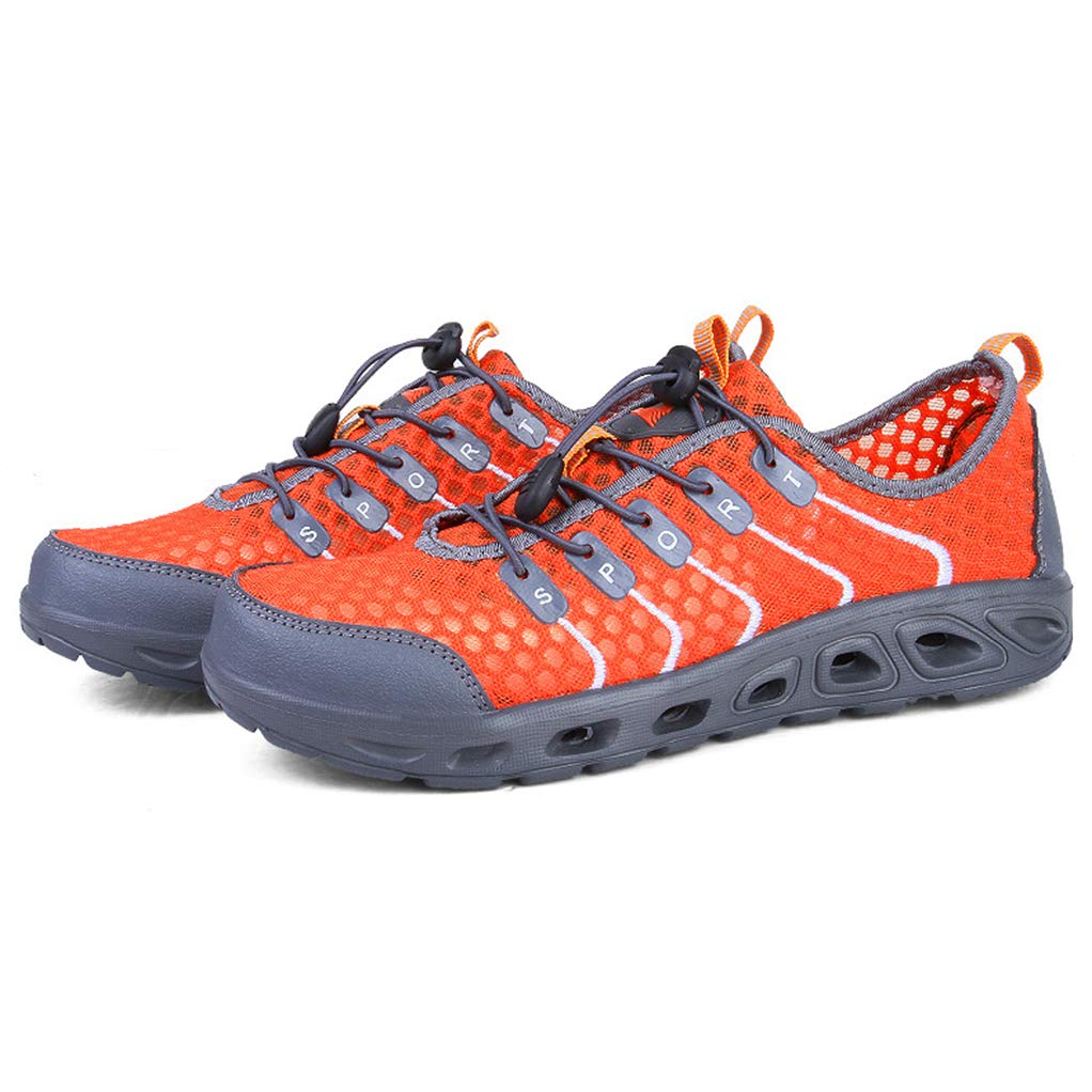A pair of orange and grey running shoes with black laces and a black sole. The shoes have a mesh upper with a pattern of small holes and a reflective orange stripe on the side. The tongue of the shoe is grey with a red logo. The shoes are placed on a white background with a shadow to the right. | Giles Jones Men Hiking Shoes Summer Non-Slip Sandals Breathable Trekking Trail Shoes | 1af5de28f44758c758e870c7d5335cf67fb80a900f653b223ed417790c8fd60c | 001229748834 | 0 | 0 | 60 | 12 | 0 | 0 | |