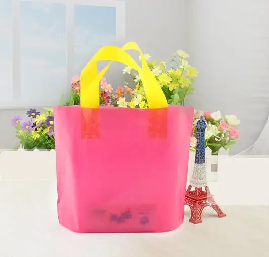 A pink tote bag with yellow handles is placed on a white surface. The bag is filled with various items, including a small blue and white container with a label that reads '02'. In the background, there is a window with a view of a blue sky and clouds. To the right of the bag, there is a small, colorful Eiffel Tower decoration. | 25*20+4cm Wholesale Purple flower Plastic Bag Shopping Jewelry Packaging Plastic Gift Bag With Handle | 28e7936ec759d7361516cfca2d6c4b7d198a8d131f9b3a8b8b7100839c9b8b88 | 001229749044 | 0 | 0 | 63 | 14 | 0 | 0 | |