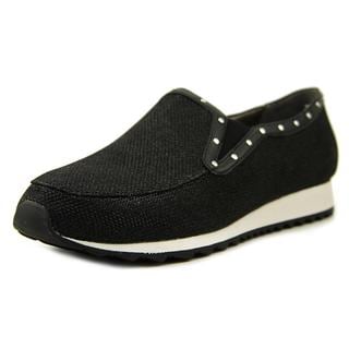 A black slip-on sneaker with a textured upper and a white sole is displayed against a white background. The sneaker features a decorative buckle on the side and a series of small white dots along the top edge. | Easy Spirit Women's 'Limara' Black Synthetic Athletic Shoes | 05f86b5d5952135ddb99bd378da565af7b1ee6de08f786459c2219f9baf00a99 | 001229749110 | 0 | 0 | 38 | 8 | 0 | 0 | |