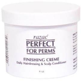 A white container with a label that reads 'Razuac PERFECT FOR PERMS' and 'FINISHING CREAM DAILY HAIR DRESSING & SCALP CONDITIONER'. The label also has a barcode and the words 'FINISHING CREAM' and 'DAILY HAIR DRESSING & SCALP CONDITIONER' written in smaller text. | Razac Perfect for Perms Finishing Creme, Daily Hairdressing & Scalp Conditioner, 4 oz | 14662c08e3547c3c4ebb765819db78c385eed514149b7ba0a4b06fdb8310acf8 | 001229749253 | 0 | 0 | 43 | 13 | 0 | 0 | |