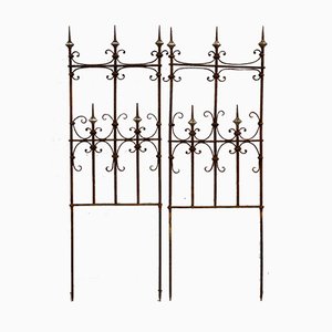 A black and white image of a wrought iron fence with intricate scrollwork and pointed arches. The fence is composed of multiple vertical bars with decorative elements at the top and bottom. The image has a vintage feel, with a focus on the fence's design and texture. | Antique Wrought Iron Trellis, Set of 2 | 339713d3ce403eaf89d6eb3dfb75adb5c39c1a75050f067c7598b8655155a023 | 001229749151 | 0 | 0 | 47 | 7 | 0 | 0 | |