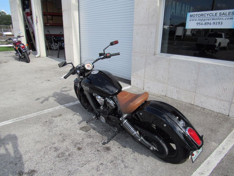 A black motorcycle with a brown leather seat is parked in a parking lot. The motorcycle is positioned in front of a building with a 'Motorcycle Sales' sign. There are other motorcycles visible in the background, and the scene appears to be set during the daytime. | 2015 Indian Scout Base city Florida Top Gear Inc in Dania Beach, Florida | eabefb6debb3c4b7cf905eaca38f45506be76e2d68c6fa129b0222eba8a8d22c | 001229749154 | 0 | 0 | 46 | 13 | 0 | 0 | |