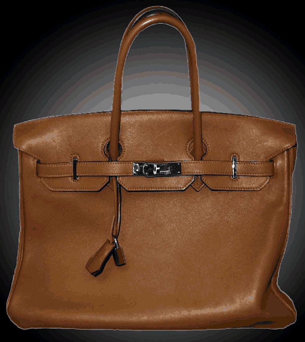A brown leather handbag with a shiny finish and a metallic buckle is displayed against a dark background. The handbag has a classic design with a top handle and a long shoulder strap. The front of the bag features a logo and a zipper closure. | Authentic Hermes Birken Bag W 22500 High End -P- | c77f614a6879b6192c80c9d999cbe6cb8f49a2ae4a4abad3cf1a618b287491d0 | 001229720461 | 0 | 0 | 45 | 9 | 0 | 0 | |