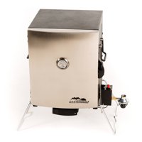 A stainless steel smoker with a black lid and a control knob on the side is displayed against a white background. The smoker has a black handle on the right side and a black base with wheels. There is a small black box with a red knob on the right side of the smoker. | Masterbuilt Portable Stainless Steel Gas Smoker | 89be6387c8a76e677154db31ec64866cebae3efbd98bda205b015e0ed4457052 | 001229720620 | 0 | 0 | 54 | 6 | 0 | 0 | |