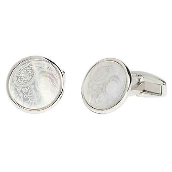 A pair of silver cufflinks with a white enamel finish, featuring intricate designs on the surface. | Simon Carter Mother of Pearl Paisley Cufflinks - Silver/White | cf5e52d05afd63494d6f44715b3ec68c7f10c70cf8fb21c8da7fbf277ab97421 | 001229720704 | 0 | 0 | 16 | 9 | 0 | 0 | |