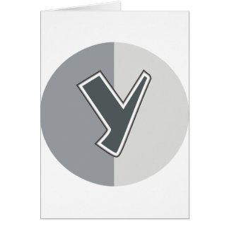 A white card with a circular design in the center. The circular design is divided into two halves, with the left half being a light gray color and the right half being a darker gray color. Inside the circular design, there is a stylized letter 'Y' made up of two diagonal lines, one thicker and one thinner, with the thicker line on the left and the thinner line on the right. The 'Y' is centered within the circular design. | Letter Y Card | 5f45dc74f24dc9ba23230b7302517e8b167382b71734bbc0322a6b094ae83580 | 001229720681 | 0 | 0 | 79 | 3 | 0 | 0 | |