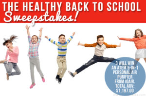 The second image is a promotional poster for a 'Healthy Back to School Sweepstakes!' featuring four children jumping in the air with joyful expressions. The poster has a red and white color scheme with a large white font that reads 'The Healthy Back to School Sweepstakes!' and 'Will Win an Atem 5-1 Personal Air Purifier from Air. Total ARV $1,000!'. The children are depicted in various poses, with one girl on the left, two boys in the center, and another girl on the right. The background is a plain white color, and the poster has a modern and eye-catching design. | The Healthy Back to School Sweepstakes | 1a61b747aa58adc75471fca4e661287bdaaebbcd9c4d77fb3d110f51648729b9 | 001229720753 | 0 | 0 | 100 | 6 | 0 | 0 | |