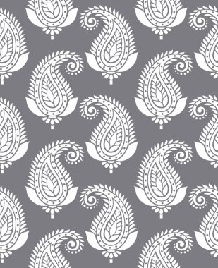A pattern of intricate white designs on a grey background. The designs include swirls, leaves, and floral motifs, all rendered in a monochromatic style. | Seamless paisley for textile design | 4441aeb1436e43aed15c02af9eef2c1dde2b7f17ad1d069c83be3baf96f13d0f | 001229720673 | 0 | 0 | 24 | 5 | 0 | 0 | |