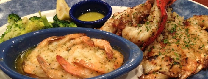 A plate of seafood with a blue rim, featuring a portion of shrimp in a white sauce, a piece of broccoli, and a blue bowl with a yellow sauce. The shrimp is garnished with parsley and lemon wedges are placed on the side. | Red Lobster is one of Lugares favoritos de TglPtrn. | 42f75c26b4cace1d7ca5a7271791f728f5140fa460ed5d3b67b8849db3672548 | 001229721000 | 0 | 0 | 43 | 9 | 0 | 0 | |