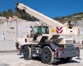A large crane truck is parked on a construction site with a clear blue sky above. The truck is positioned on a flat surface with a concrete wall on the left side. There are two people visible in the scene; one is standing near the left side of the truck, and the other is closer to the center. The truck has a large boom crane extending upwards, and the cab is equipped with a green windshield and yellow markings. | Terex RT 35, 2016, RT-nosturit | e019c22f9b54fd417d32fab615ffa789ae70022ab9673f84245a66bdf13c564e | 001229721019 | 0 | 0 | 79 | 5 | 0 | 0 | |