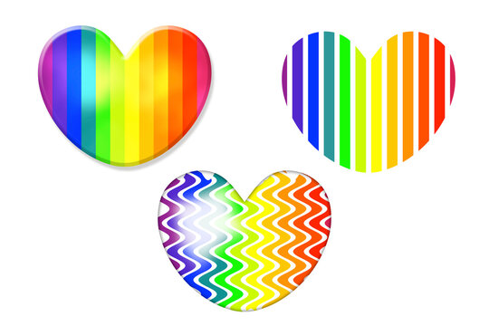 A collection of three heart-shaped stickers with different patterns and colors. The first sticker on the left has a gradient of rainbow colors, starting with red at the top and transitioning to yellow, green, blue, and finally purple at the bottom. The second sticker in the middle has a pattern of wavy lines in shades of blue, green, and yellow, with a gradient effect that gives the impression of a rainbow. The third sticker on the right has a striped pattern with alternating colors of red, yellow, green, blue, and purple. | love heart rainbow pride illustration icon symbol set for holiday event celebration | 436880e37ec1c4bb36d0d0b674654240097fff5e814ff87c023bc4e4513adb48 | 001229721155 | 0 | 0 | 91 | 12 | 0 | 0 | |
