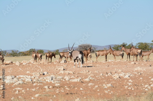 A group of antelopes is grazing on a dry, rocky plain under a clear blue sky. | Poster Antilope Wildlife in Africa | 2f1edd34c35fdf9f3ac7557d7103dabd01f8210d1f9f945f843b97473cdb33fe | 001229721286 | 0 | 0 | 16 | 5 | 0 | 0 | |