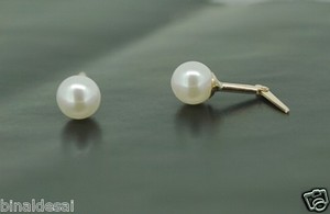 A pair of white pearl earrings with a gold post and back are displayed on a dark surface. The pearls have a smooth, lustrous finish and are of a similar size and shape. The gold post and back are simple and unadorned. | 9ct Gold ANDRALOK 5mm Plain Round Pearl Stud Earrings Girls Mum's B'day GIFT BOX | 48486bc0abaa5a4bae9912bd85852a40fdd95da2d28f339a20ed324249cdbe84 | 001229721395 | 0 | 0 | 42 | 14 | 0 | 0 | |