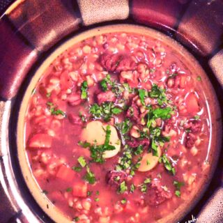 A bowl of stew with a variety of ingredients including meat, vegetables, and herbs. The stew appears to be a hearty, meat-based dish with a rich, brown broth. The ingredients are well-cooked and the dish looks appetizing. The bowl is placed on a surface, and the lighting suggests it is daytime. | Beef and Barley Stew | 79f1b590348221f0c1526538e7956410cc28fb3a13808f731ef8d58b62d5a3a8 | 001229721367 | 0 | 0 | 51 | 4 | 0 | 0 | |