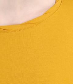 A close-up of a person's upper body wearing a yellow shirt. The shirt has a ribbed collar and is made of a smooth fabric. The person's skin is visible around the neckline, and the shirt is tightly fitted. | Jersey t-shirt with trim | b60bd0bed4bab47818ee014cdf8e3499ca8cd184e27ad9e507be0ae24de34f9e | 001229721214 | 0 | 0 | 38 | 4 | 0 | 0 | |