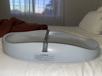A white plastic baby bathtub with a blue label on the side is placed on a bed with white sheets. The bed is against a wall with a window that has sheer curtains, and there is a white pillow on the bed. | Bumbo Changing Pad - Gray Thumbnail | f195579f13e9b9a848bb61e041fd8bde7906157c5cdc7fd993eb628543215604 | 001229722259 | 0 | 0 | 42 | 6 | 0 | 0 | |