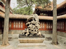 A black and white photograph of an ancient Chinese courtyard with a large, intricate stone carving in the center. The carving is surrounded by a stone platform, and the courtyard is flanked by traditional Chinese architecture with tiled roofs and wooden pillars. The scene is serene and appears to be devoid of people, emphasizing the historical and cultural significance of the setting. | Gugun, Forbidden city Stock Image | e92ed3fa6e97d31b8428fd38826a560fdb601bcaa0cb9c60687e7d81949dd32a | 001229722282 | 0 | 0 | 62 | 5 | 0 | 0 | |
