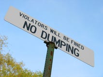 A sign with the words 'VIOLATORS WILL BE DUMPED BE FINE' is mounted on a pole. The sign is white with black text and is positioned against a clear blue sky. The pole is green and rusty, and there is a hint of green foliage visible at the bottom of the image. | No dumping | bd891ae14ff45b8f2aed394e42adca5415c426888b1a3591907b10b2e4b75be8 | 001229722303 | 0 | 0 | 52 | 2 | 0 | 0 | |