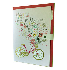 A greeting card with a red cover and a white interior. The card features a colorful illustration of a bicycle with a basket full of flowers. The bicycle is pink with gold accents, and the flowers are in various colors including yellow, pink, and red. The card has a 'Happy Mother's Day' message with the words 'Happy', 'Mother's', 'Day' written in a decorative font. There are also smaller floral illustrations and hearts scattered around the card. The card is blank inside, ready for a personal message. | Bicycle Basket of Flowers - Mother's Day | bb0802692b51eb7343185a84a712fadf085b5b4b3ce1b3ec884b3b5bf9144188 | 001229722603 | 0 | 0 | 86 | 7 | 0 | 0 | |