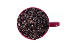 A red coffee cup filled with coffee beans is placed against a white background. The coffee beans are of various sizes and shades of brown, with some appearing lighter and others darker. The cup has a curved handle and is positioned at an angle, with the beans spilling over the rim onto the surface below. | Coffee beans. Coffe beans in a red coffee mug Royalty Free Stock Photos | ed842b8e5c99da497235bbcb62bdc5def8f72e1eb31b54a40c88292321d61c08 | 001229722641 | 0 | 0 | 55 | 13 | 0 | 0 | |