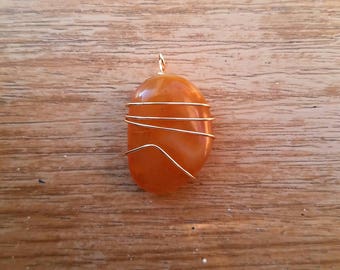 A golden necklace with a large, smooth, orange gemstone pendant is lying on a wooden surface. The gemstone has a warm, golden hue and is surrounded by a series of thin, golden wire strands that form a pattern around it. The wooden surface has a light brown color with visible wood grains and knots. | Oregon Coast Agate Pendant | 25b46a27adbda9de0ae6af10106372a27e300a32b26360dec5987be7985a4631 | 001229722826 | 0 | 0 | 54 | 4 | 0 | 0 | |