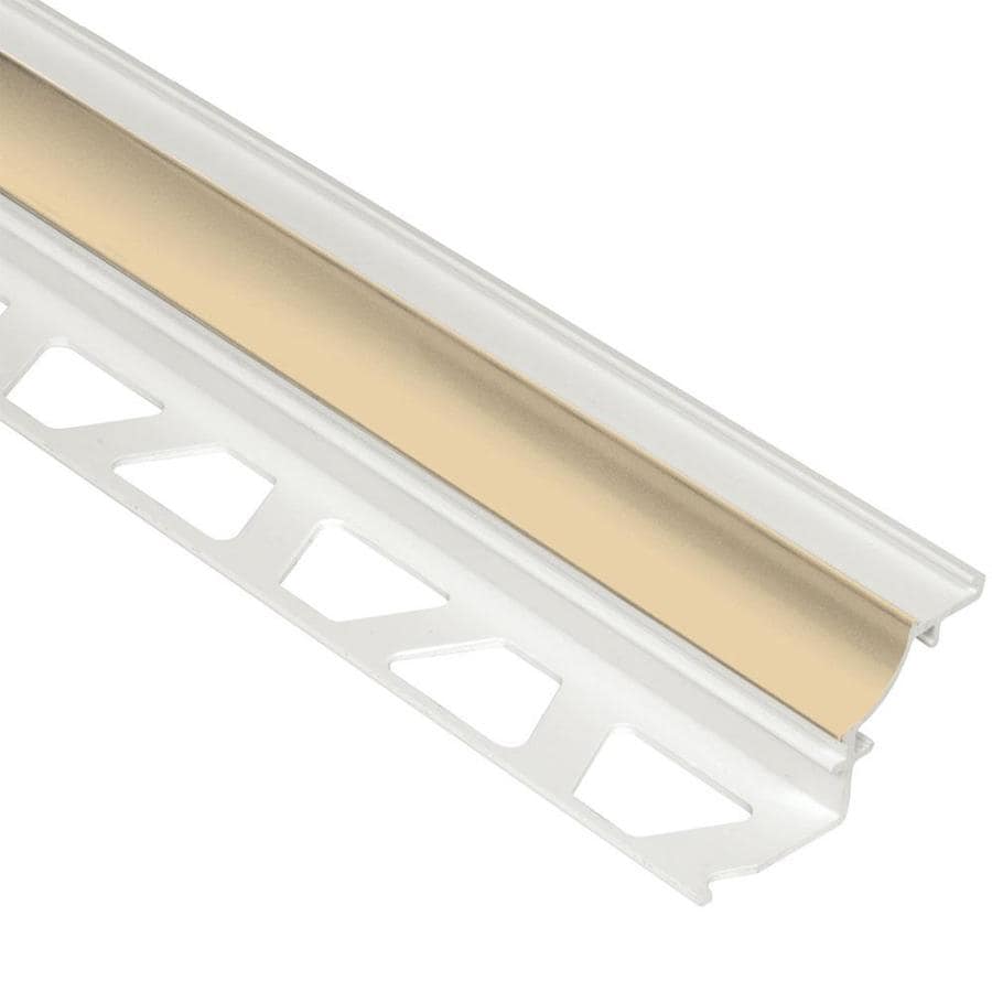 A close-up of a white and gold modern minimalist wall panel with a geometric design. | Schluter Systems Dilex-PHK 0.313-in W x 98.5-in L PVC Tile Edge Trim | d63e64e9dbb89cd205d9d0e3ae1c2ddab8bc63a585066402ae240e0cbe0a7af0 | 001229723057 | 0 | 0 | 15 | 12 | 0 | 0 | |