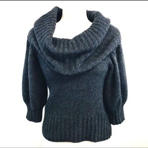 A blue knitted sweater with a high collar and a ribbed texture is displayed on a white mannequin. The sweater has a fitted silhouette and is showcased against a white background. | Mango grey wool angora poly half sleeve sweater L | ac39716fb0f235fdda4bcadcf6b27cd0f46a302cb586fe802d79a77339bd600a | 001229723451 | 0 | 0 | 31 | 9 | 0 | 0 | |