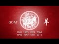A red background with a circular emblem featuring a stylized goat and the word 'GOAT' in white. Below the emblem, there is a list of years in white, starting from 1901 and ending with 2015. | Year of the Goat: 2016 Chinese Horoscope | 70ca54d184a40887c98daeb7d33fc6c211d3754f762c83bce53e1e4a6dea4cdc | 001229723397 | 0 | 0 | 35 | 7 | 0 | 0 | |