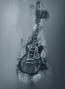 The second image shows the same electric guitar, but with a significant change in its appearance. The guitar now has a dark, almost black color with a glossy finish, and the fretboard is black as well. The body of the guitar has a more pronounced texture, and the headstock is also darker. The background is a gradient from dark to light, and there is a visible smudge or smear effect on the guitar, giving it a more dramatic and artistic look. | Single electric guitar in gray Piirros | d6a649783b05050496454081bfd3f6c39f5a71a736794eee299e8747af5fd867 | 001229723449 | 0 | 0 | 81 | 6 | 0 | 0 | |
