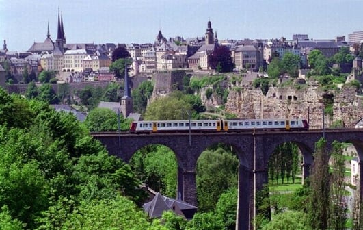 A train is traveling through a scenic countryside with a bridge over a river. The train has yellow and white cars and is passing through a tunnel. The surrounding landscape is lush with green trees and the sky is clear. | Living in Luxembourg | aa0a52660b874315ff31430112a8effc01f66307657a16dc51a59e3e8233024a | 001229723370 | 0 | 0 | 40 | 3 | 0 | 0 | |