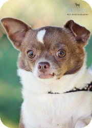 A brown and white Chihuahua with a black collar is sitting in front of a blurred green background. | Chihuahua Dog for adoption in Mt Gretna, Pennsylvania - Monkey | f5b61c120c82df0f2173cfca665e0d27ed1661ee1e02bbc4ada99fd9e8343f06 | 001229724409 | 0 | 0 | 18 | 10 | 0 | 0 | |