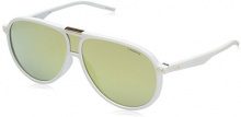 A pair of sunglasses with a white frame and green lenses. The sunglasses have a distinctive design with a curved shape and a metal hinge at the top. The lenses are tinted with a gradient from light to dark green, and the frame has a gold-colored detail on the left side. The sunglasses are placed against a white background. | Polaroid PLD 6025/S LM, Occhiali da Sole Unisex-Adulto, Matte White, 99 | c445fab93650dbc269e8be741ef19d4f8f61f77de9b345df8423bd7a6abfddd8 | 001229724327 | 0 | 0 | 59 | 11 | 0 | 0 | |