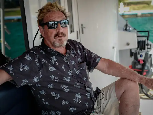 A man with a beard and mustache is wearing sunglasses, a black and blue Hawaiian shirt, and khaki shorts. He is sitting on a boat with his legs crossed, and there is a hairdryer on the boat's surface to his right. | Running for president: John McAfee wants Dr D to craft his campaign message | 450a28cfcc1d1bc68ca1f0192eea20b2e0e9afd4d100d7e47257dc27ad95d78a | 001229724403 | 0 | 0 | 41 | 13 | 0 | 0 | |