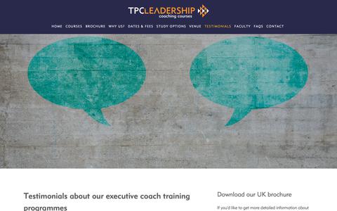 The second image is a close-up of the wall with the two large, stylized speech bubbles. The bubbles are now the main focus, with the wall's texture and the smaller speech bubble in the background less visible. The image is cropped to emphasize the bubbles, and the text 'TESTIMONIALS ABOUT OUR EXECUTIVE COACH TRAINING PROGRAMMES' is prominently displayed at the bottom. The image has a more intimate and focused feel compared to the first image. | Screenshot of Testimonials Page executive-coaching-courses.co.uk - Testimonials \xe2\x80\x94 Executive coaching courses - captured Oct. 23, 2018 | b241cac978750172e5ef7f470f780f7597cdcf401539142c8a9df6b107c6ba5b | 001229724700 | 0 | 0 | 75 | 16 | 0 | 0 | |