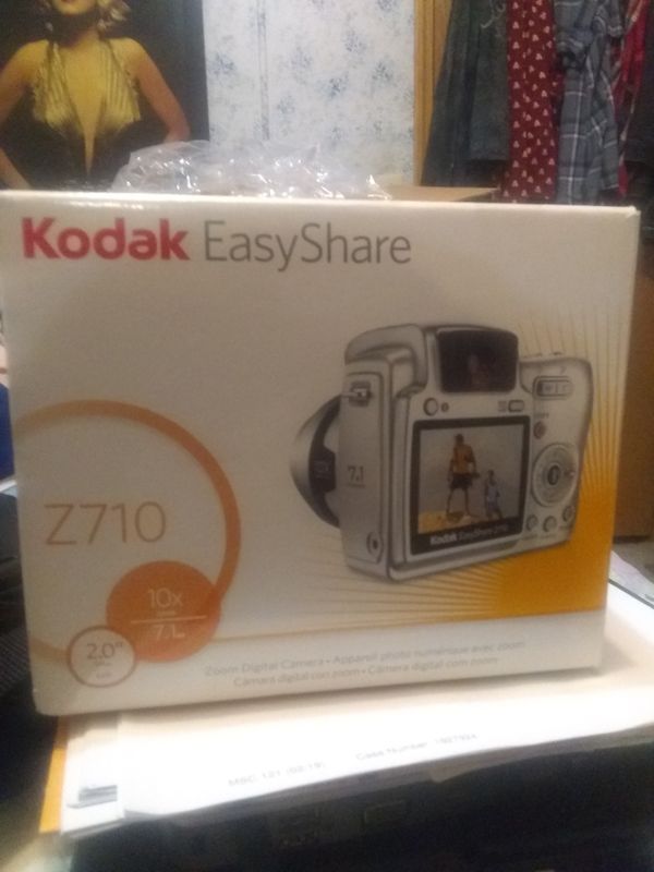 A Kodak EasyShare digital camera box is on a cluttered desk with various items such as a book, a cup, and a pair of scissors. | Kodak easy share z710 digital camera | edc90bab4f89e273248d74f280e8c056ce225128a1928d61ef6f8ff37d57596b | 001229724673 | 0 | 0 | 25 | 6 | 0 | 0 | |